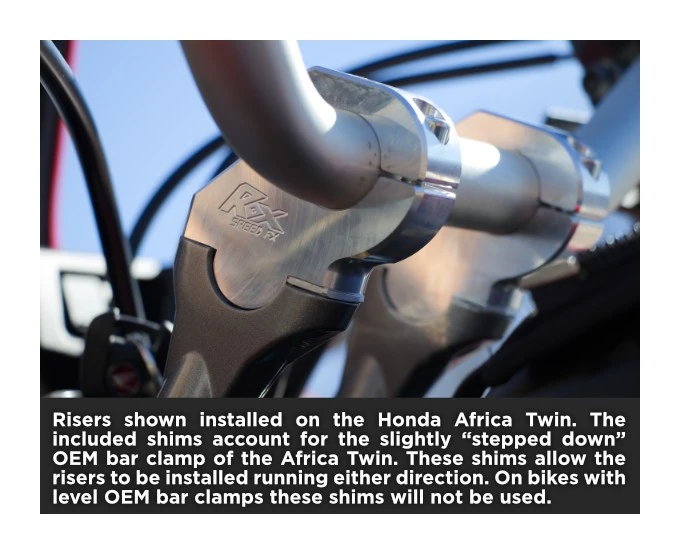 - (2) Step shims included to allow installation on bikes with an OEM step down triple clamp such as the Honda Africa Twin